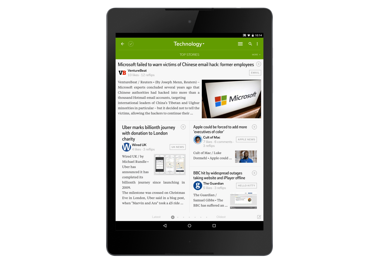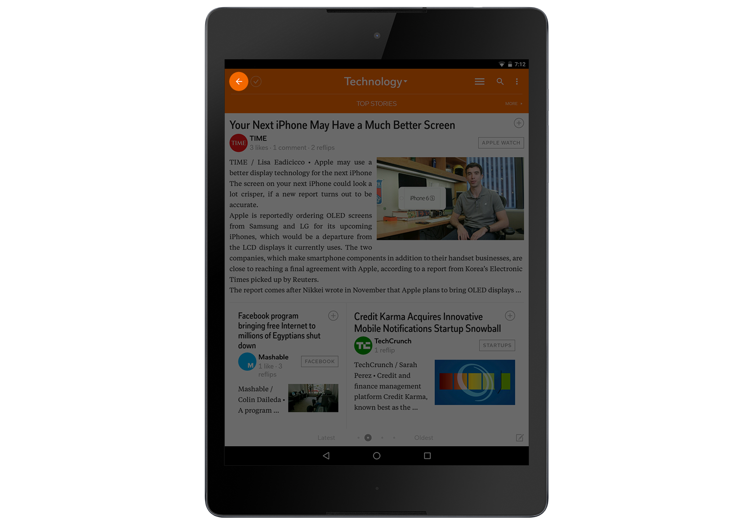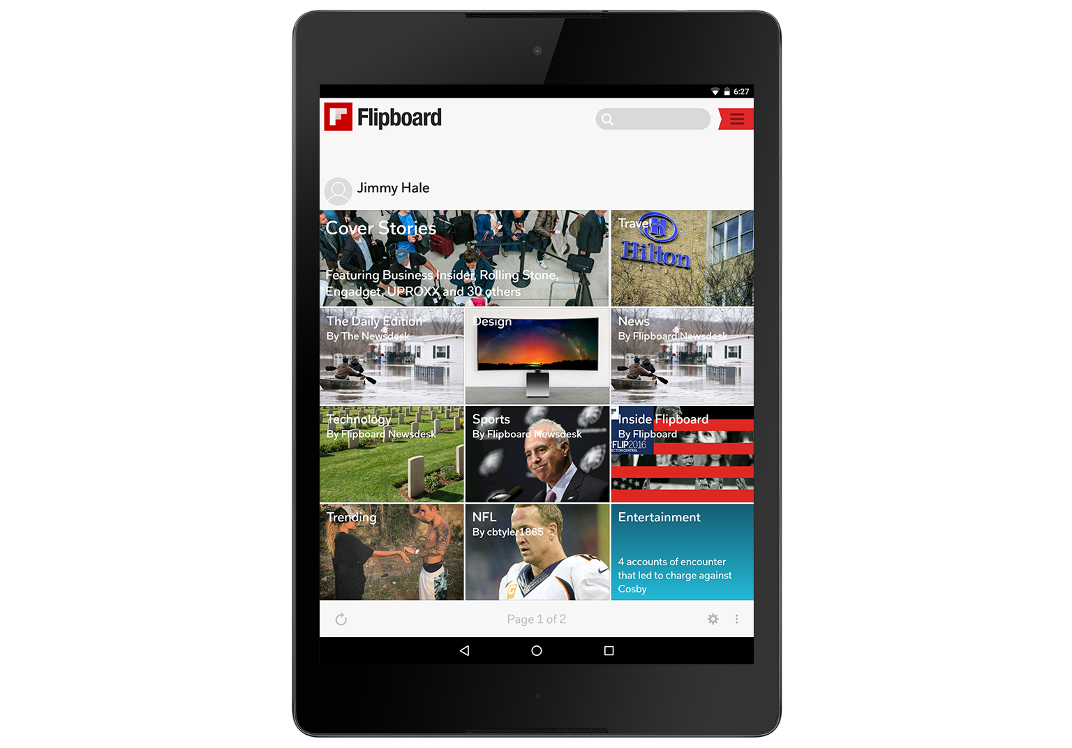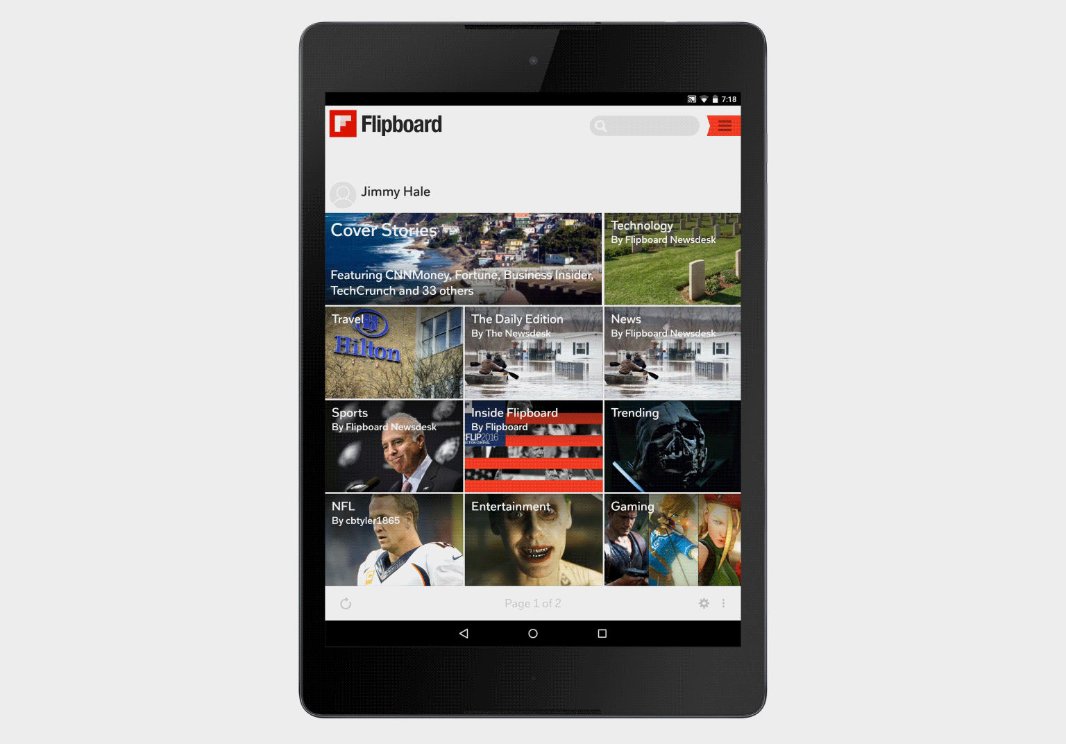 From the Flipboard home page, you'll be able to access news articles related to the topics you selected when you first opened the app.